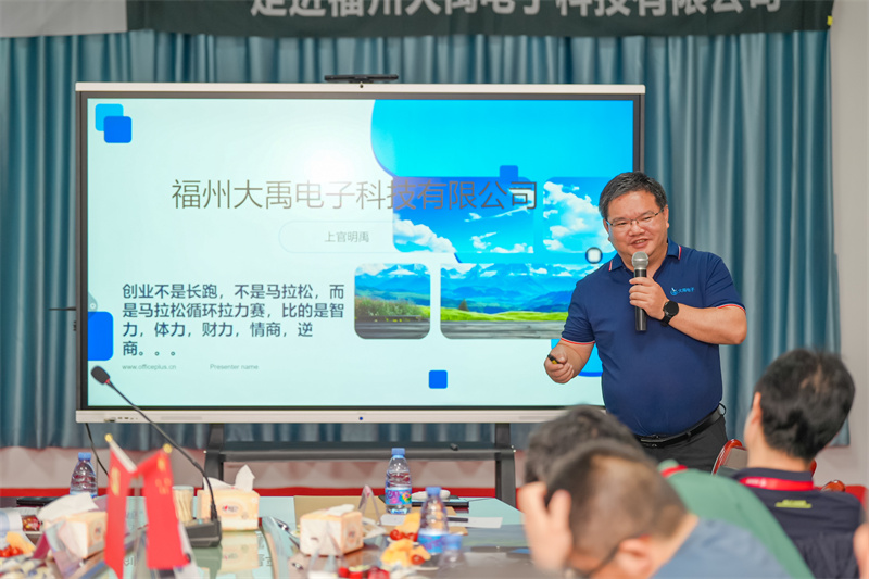 隨后被主持人請(qǐng)上講臺(tái)的上官董事長(zhǎng)帶領(lǐng)大家回望大禹電子的發(fā)展歷程,從創(chuàng)業(yè)初期的篳路藍(lán)縷,到如今在行業(yè)中的領(lǐng)軍地位,每一個(gè)里程碑都鐫刻著團(tuán)隊(duì)不懈的努力與堅(jiān)持。他的話語(yǔ)中充滿了對(duì)團(tuán)隊(duì)智慧的贊譽(yù)和對(duì)辛勤汗水的尊重,將大禹電子的成長(zhǎng)故事講述得如同一部波瀾壯闊的史詩(shī),讓人耳目一新。